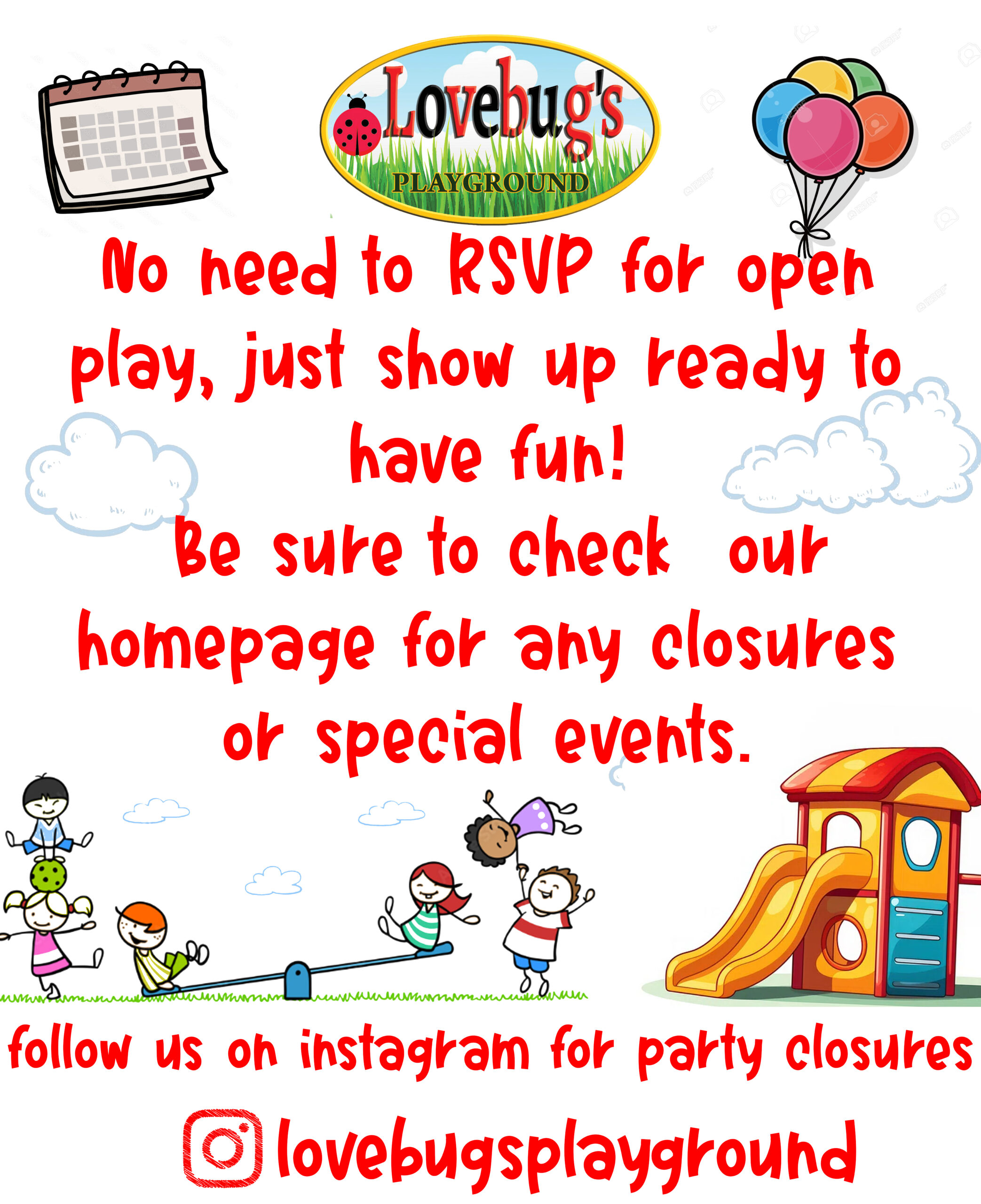 Come and go as you please. No need to pay admission again for returning same day. 20% sibling discount. Discount on parties.