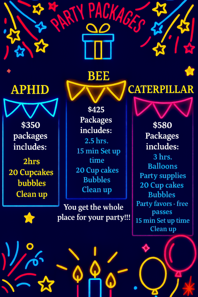 ALL CHANGES TO MEMBERSHIPS AND PARTY PACKAGES VALID IF PURCHASED UNDER NEW MANAGEMENT STARTING AUGUST 27,2025